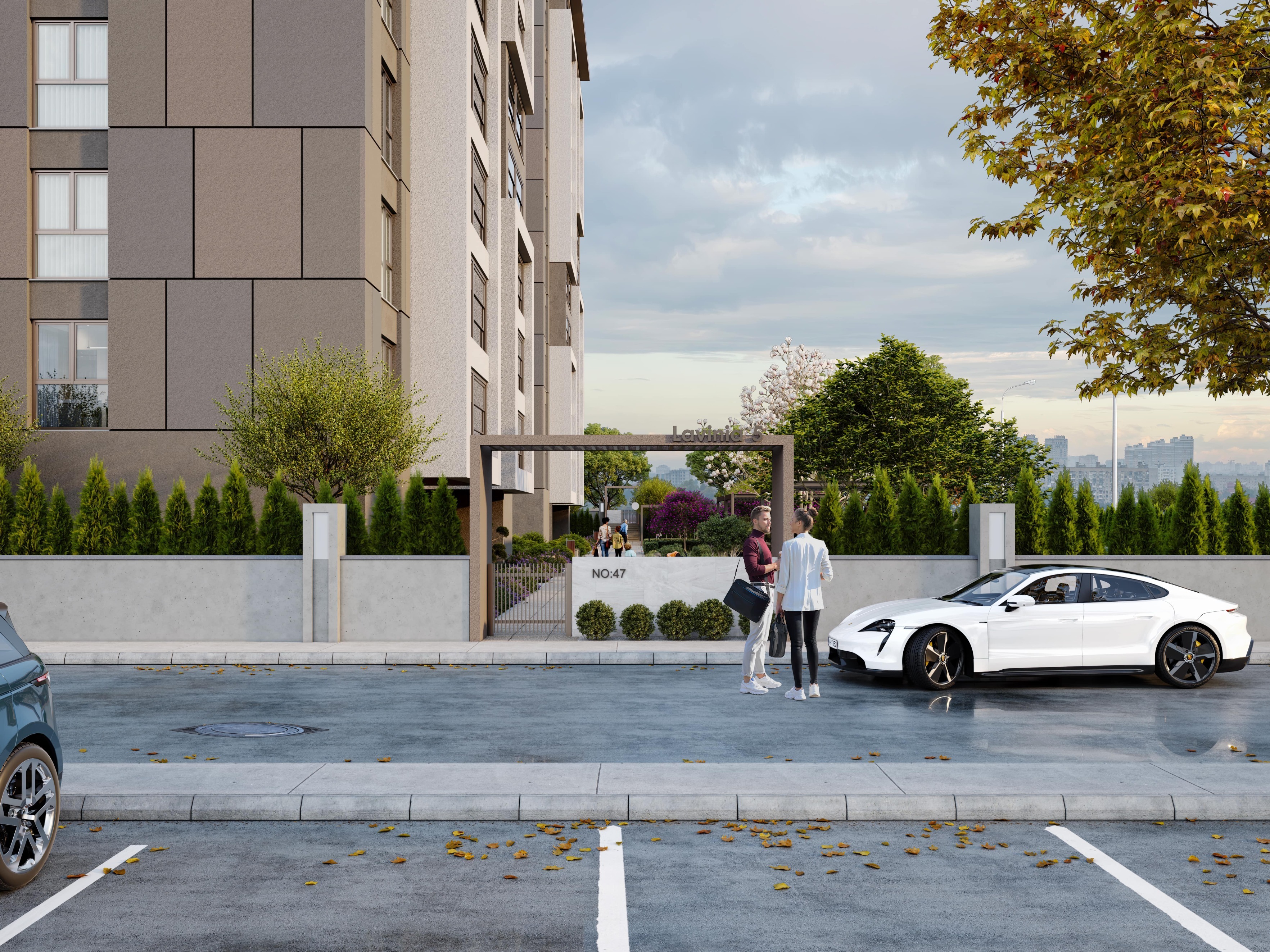 Cephe tasarımında kullanılan dengeli renk geçişleri ve net formlar, Lavinia 5’e zamansız bir mimari kimlik kazandırırken; peyzajla desteklenen giriş alanı siteye girildiği anda düzen ve kalite hissini ön plana çıkarır.