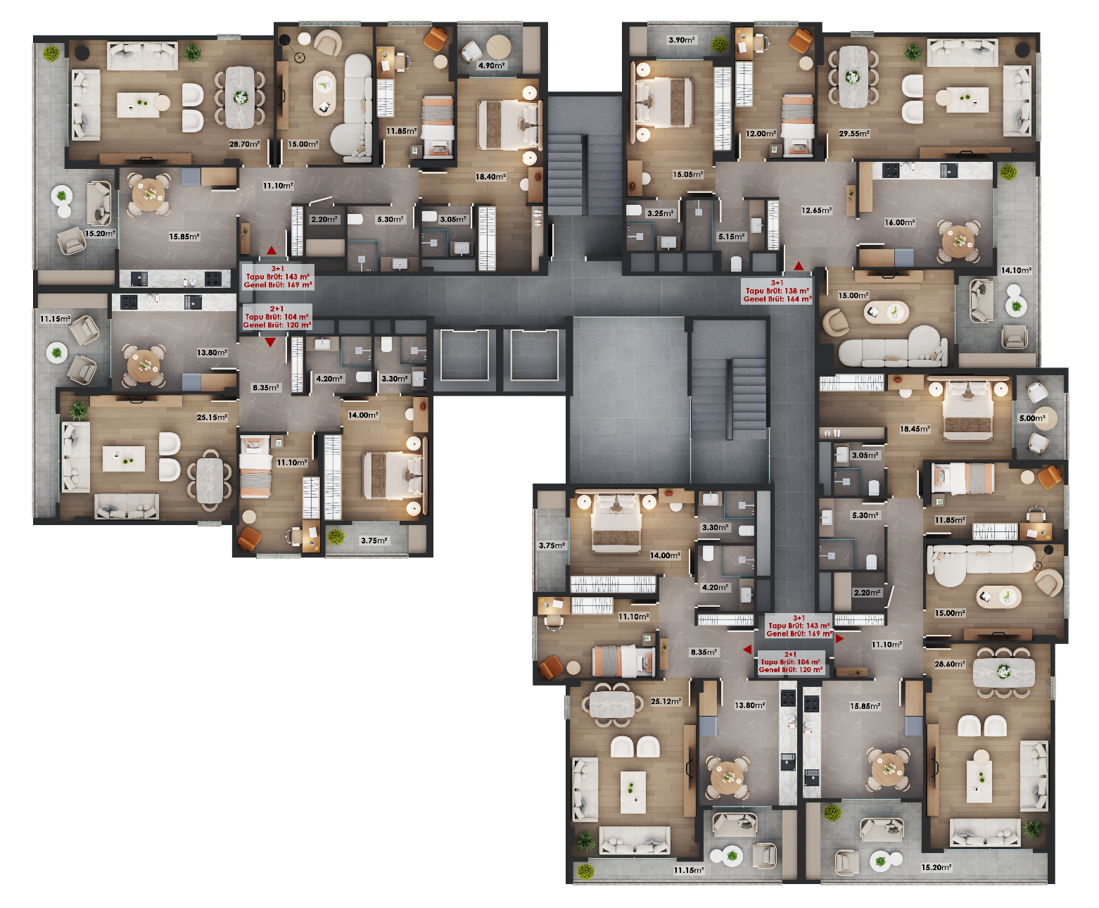 Mirada Park’ta yer alan daire tipleri, farklı yaşam ihtiyaçlarına cevap verecek şekilde tasarlanmıştır.